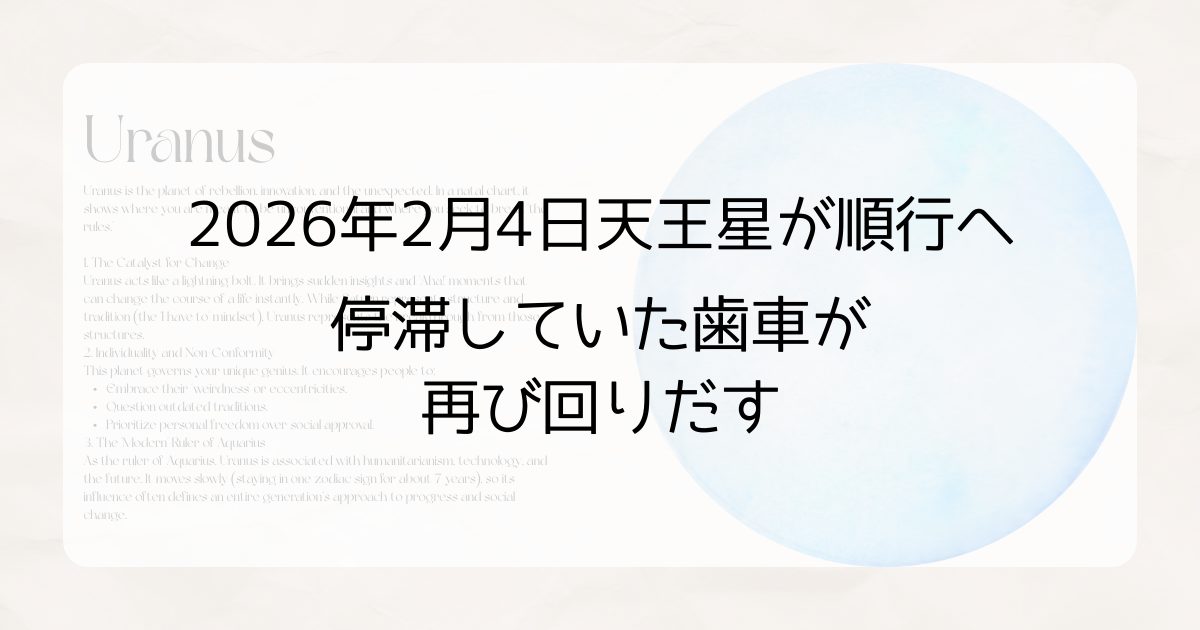 実は、この停滞感には意味がありました。改革や自立を司る星・天王星が歩みを緩めて私たちに現状の再点検を促していたのです。